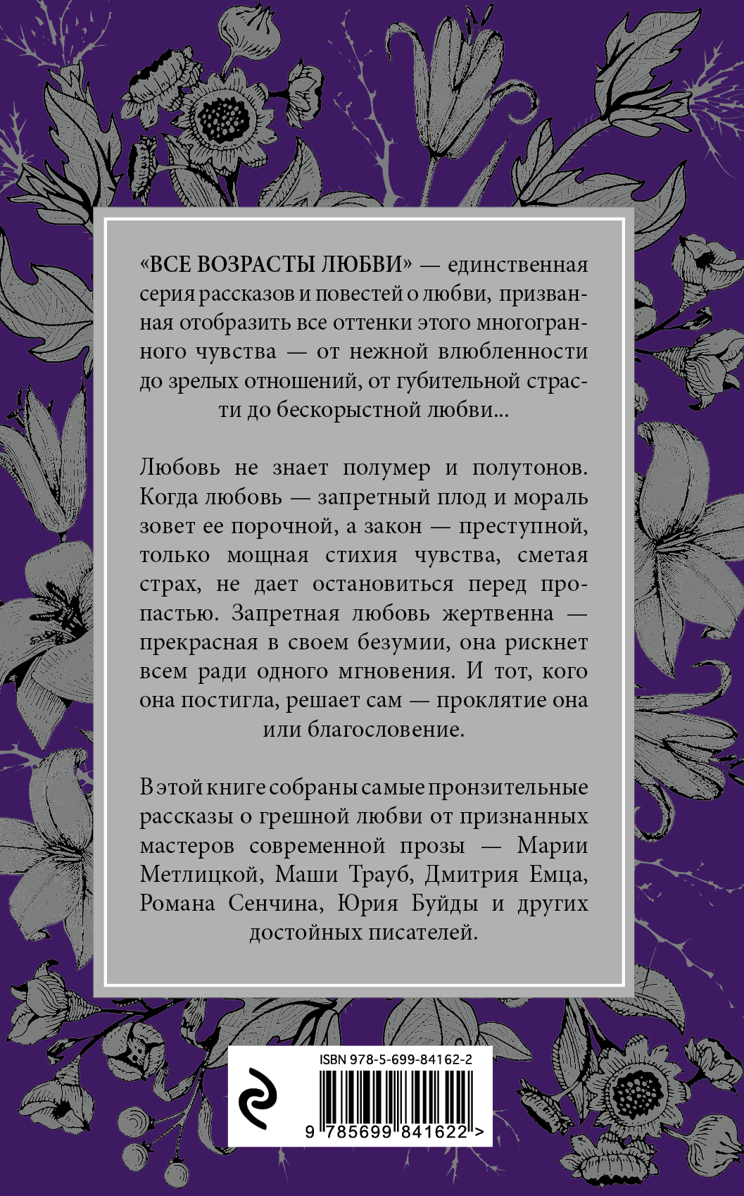 Свой взгляд на эту интимную тему запретной любви представили авторы: Дмитрий Емец, Ирина Щеглова, Татьяна Тронина, Мария Ануфриева, Роман Сенчин, Улья Нова, Валерий Панюшкин, Юрий Буйда, Маргарита Меклина.
